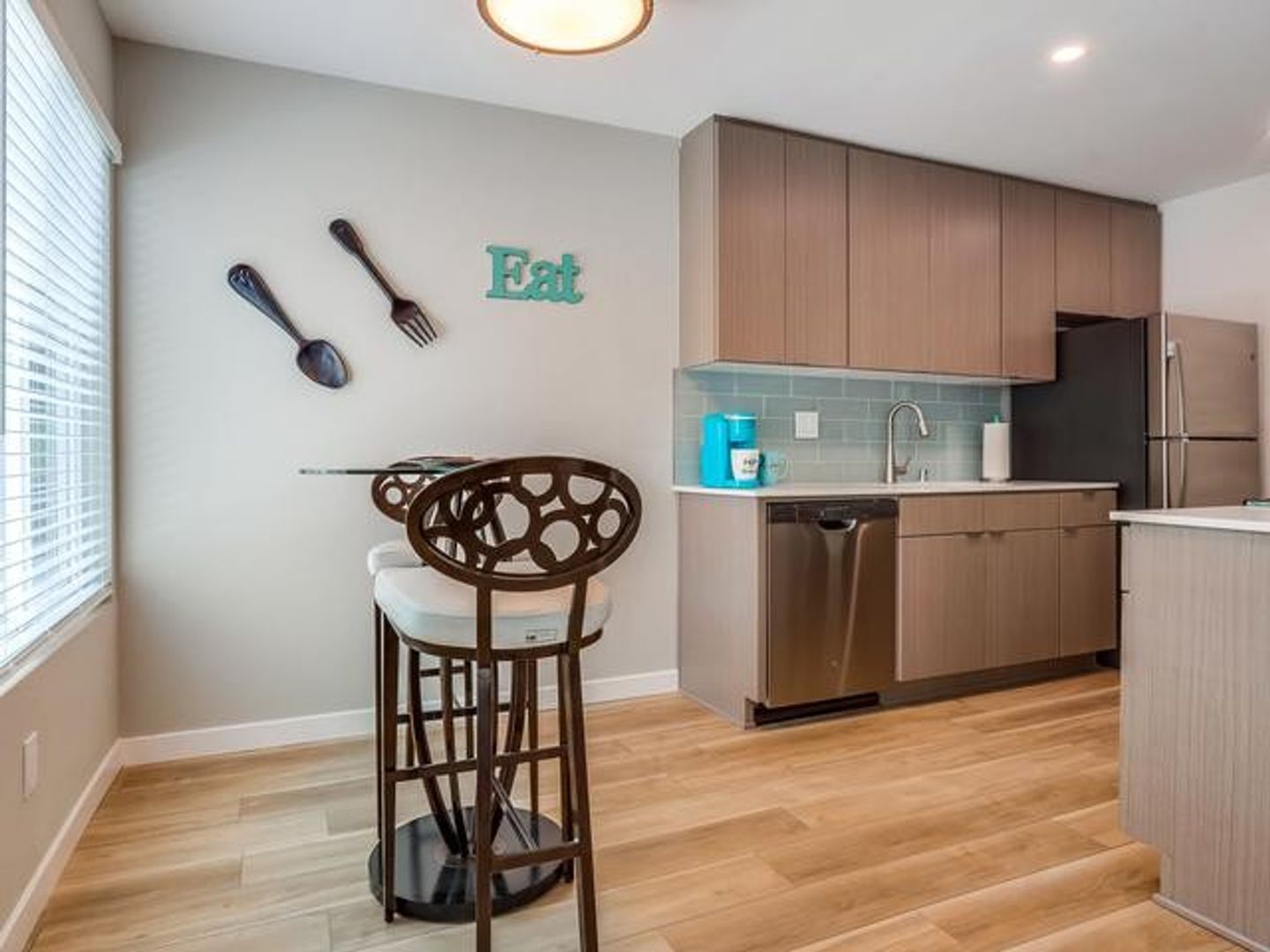 -You will enjoy your new kitchen with dishwasher, microwave, glass-top stove and Refrigerator ALL STAINLESS.