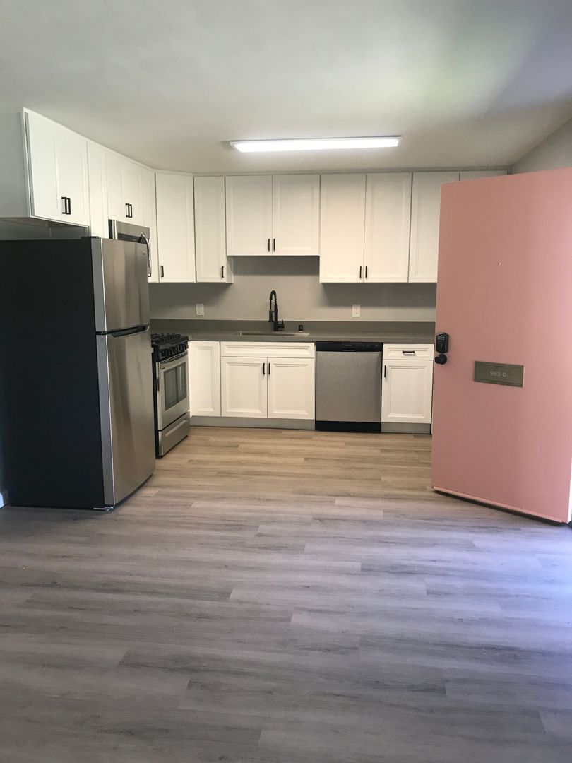 Welcome home to Tranquilla Apartments! This charming fully renovated 1x1 single-story apartment home offers laminate floors throughout and a gorgeous white cabinet kitchen! The fully equipped kitchen boasts stainless appliances and a full-size 2-in-1 washer/dryer. Storage won't be a problem with ample kitchen cabinet space and large closets in the bedroom.