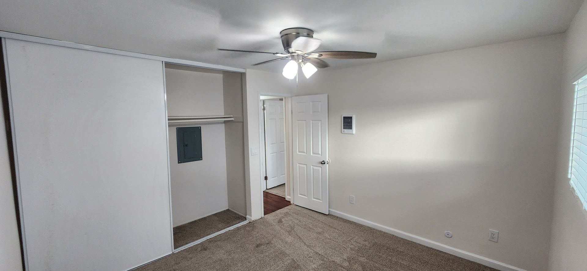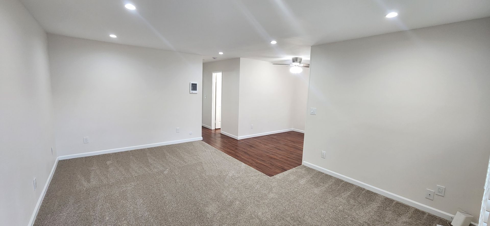 This spacious, 2nd floor, two-bedroom apartment with upgraded recessed lighting, ceiling fans in every room, an AC in the living room and new carpet.
