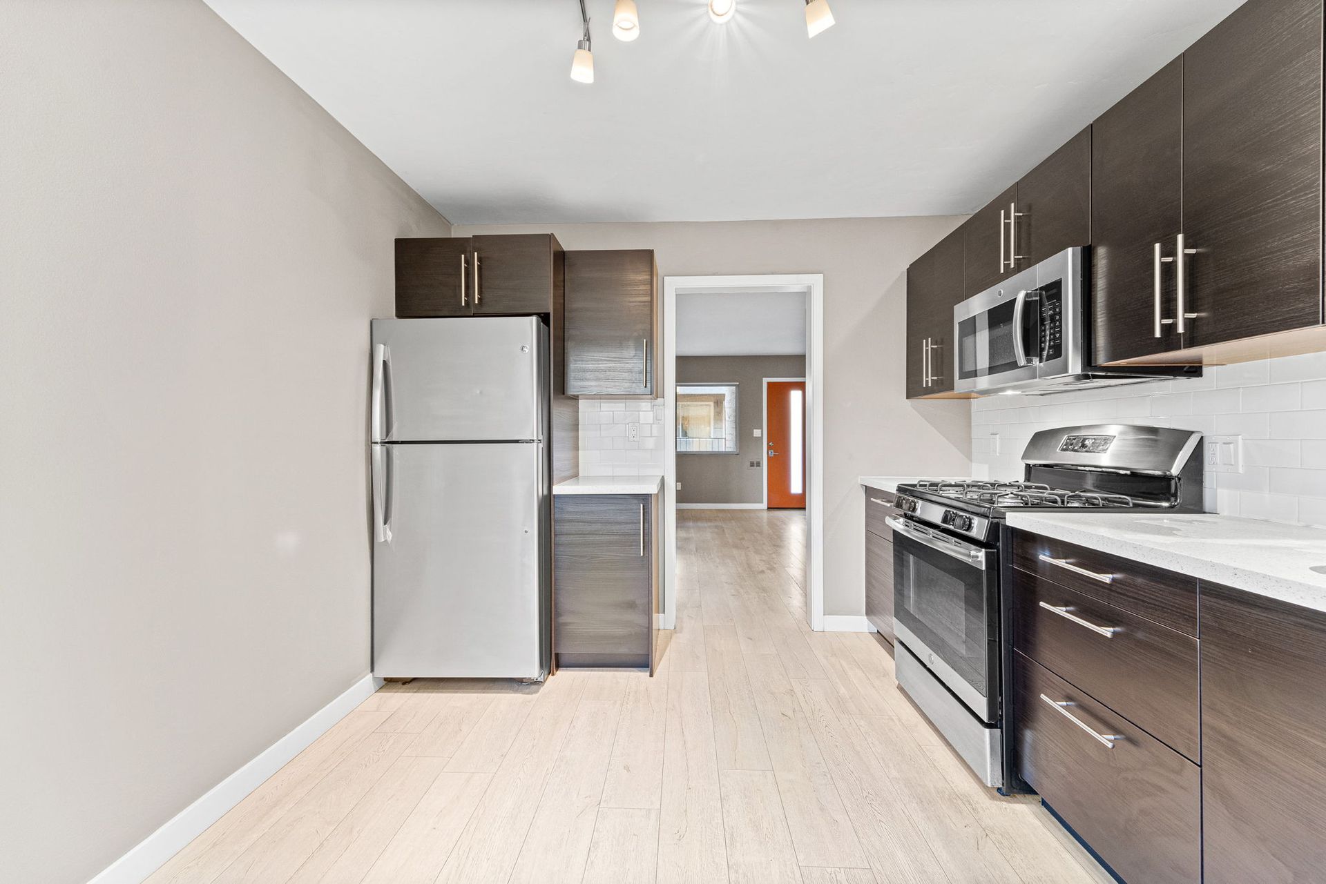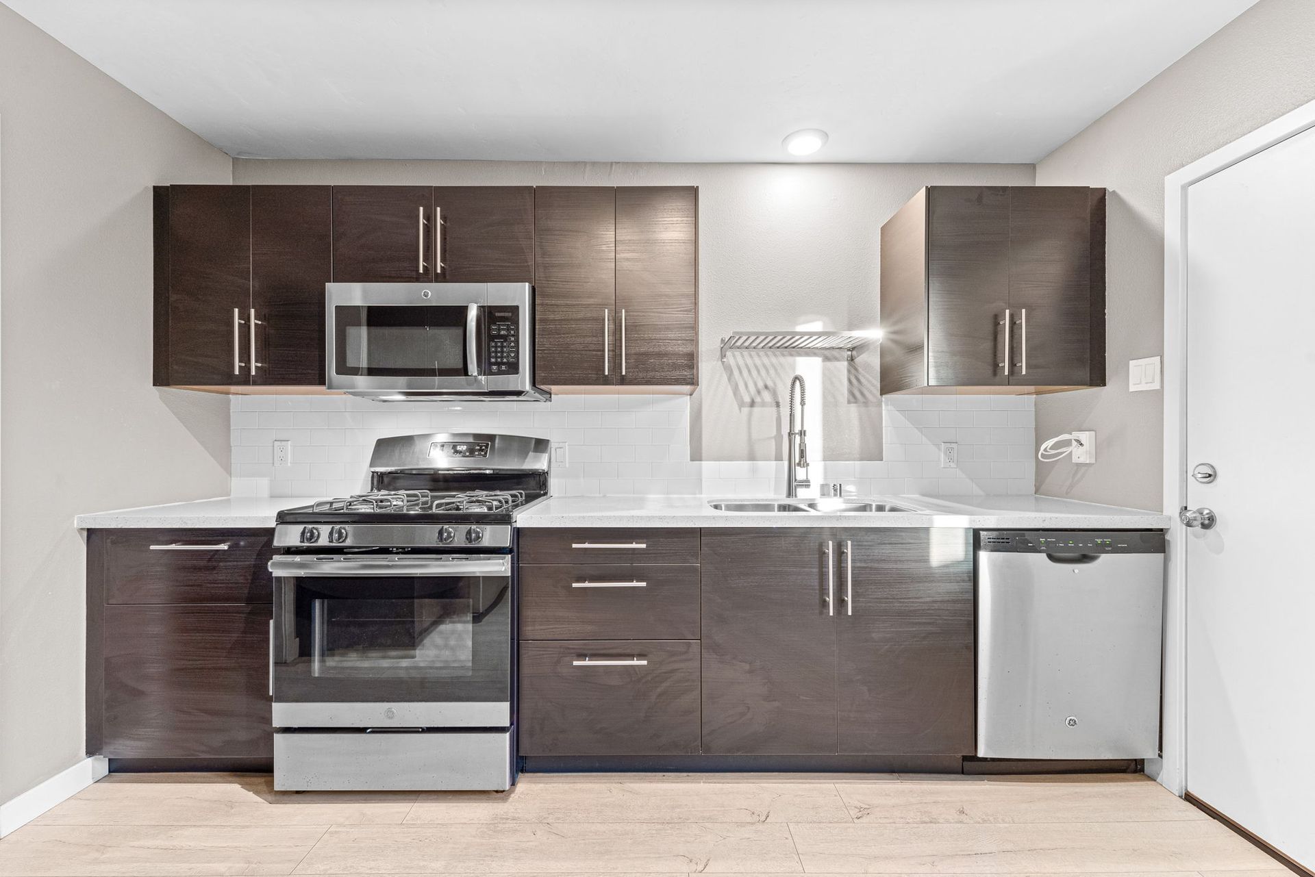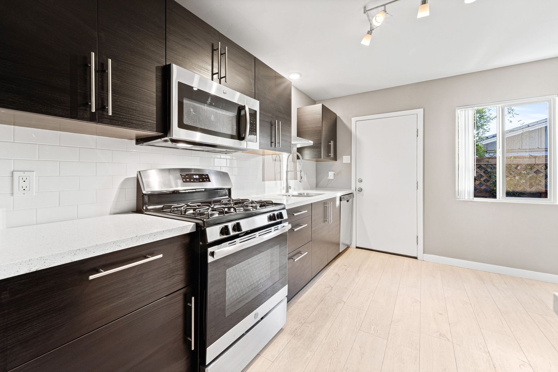 Kitchen have electric stoves, dishwasher, microwave, and refrigerator.