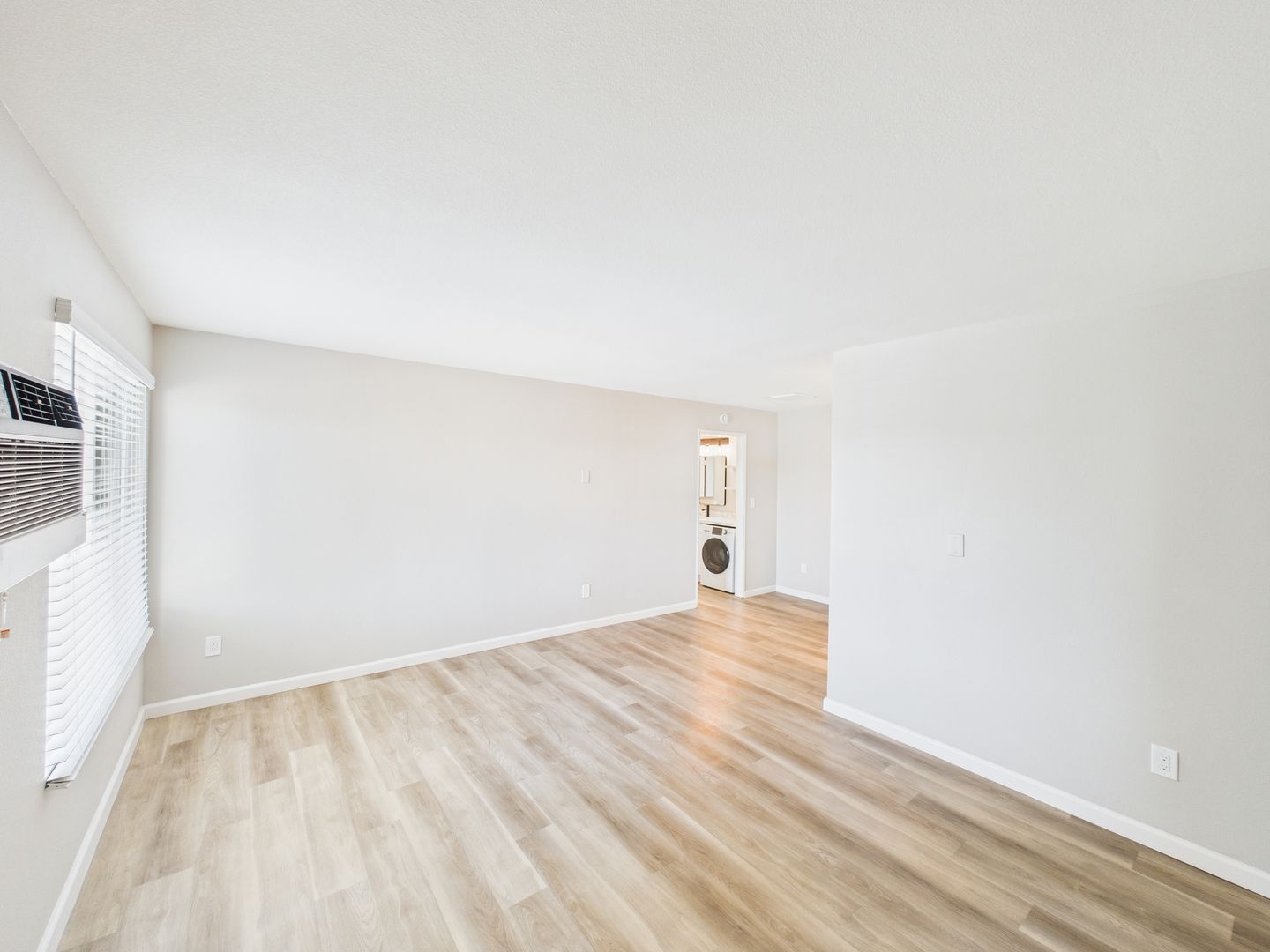 Enjoy year-round comfort with air conditioning and the convenience of in-unit laundry. The spacious living area flows seamlessly into the kitchen, creating the perfect setting for entertaining or relaxing at home.