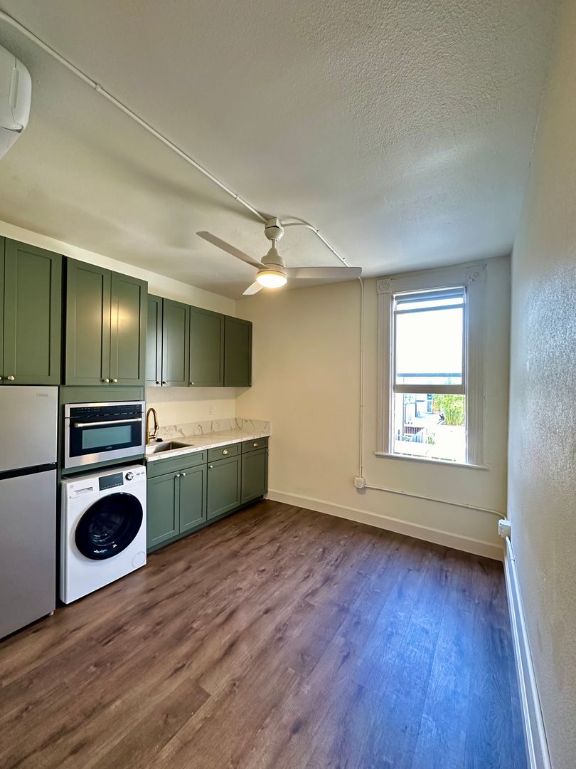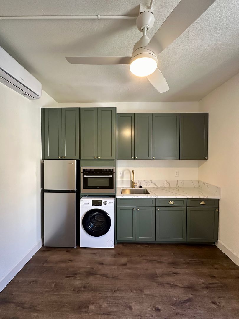 Each unit boasts a brand-new kitchen and modern appliances including a refrigerator and microwave/oven combo, and cook top hot plate, ensuring that you have the best of both worlds. You'll also love the natural light that floods in through large windows, making your living space warm and inviting and a/c to help keep cool on those warm San Diego days. Additional bonus SF with the addition of loft space above the bathroom. This space has built-in ladder access, electrical outlet, light fixture, and space to fit a twin mattress if desired.