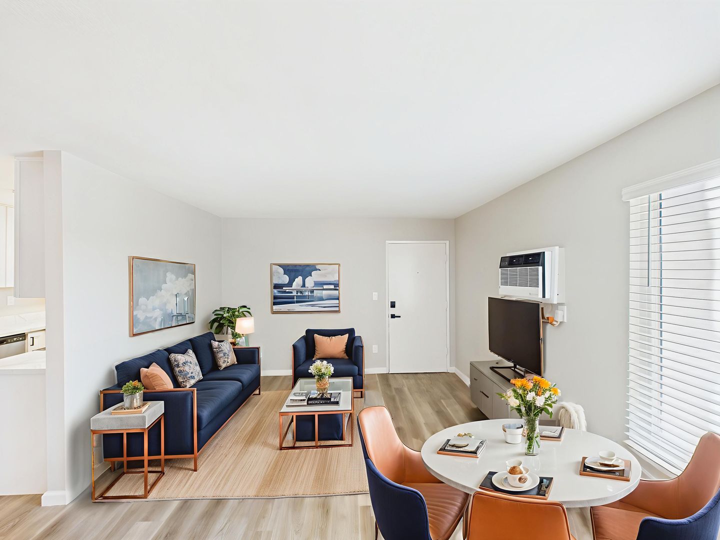 Enjoy year-round comfort with air conditioning and the convenience of in-unit laundry. The spacious living area flows seamlessly into the kitchen, creating the perfect setting for entertaining or relaxing at home.