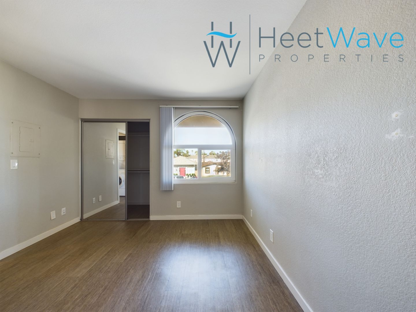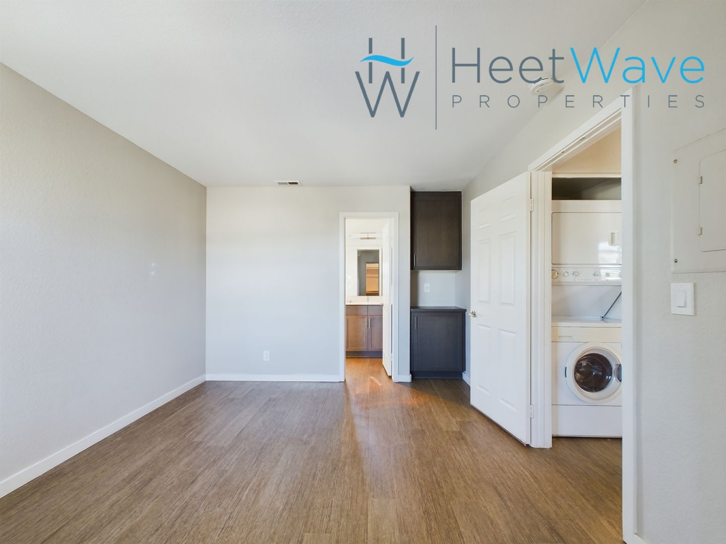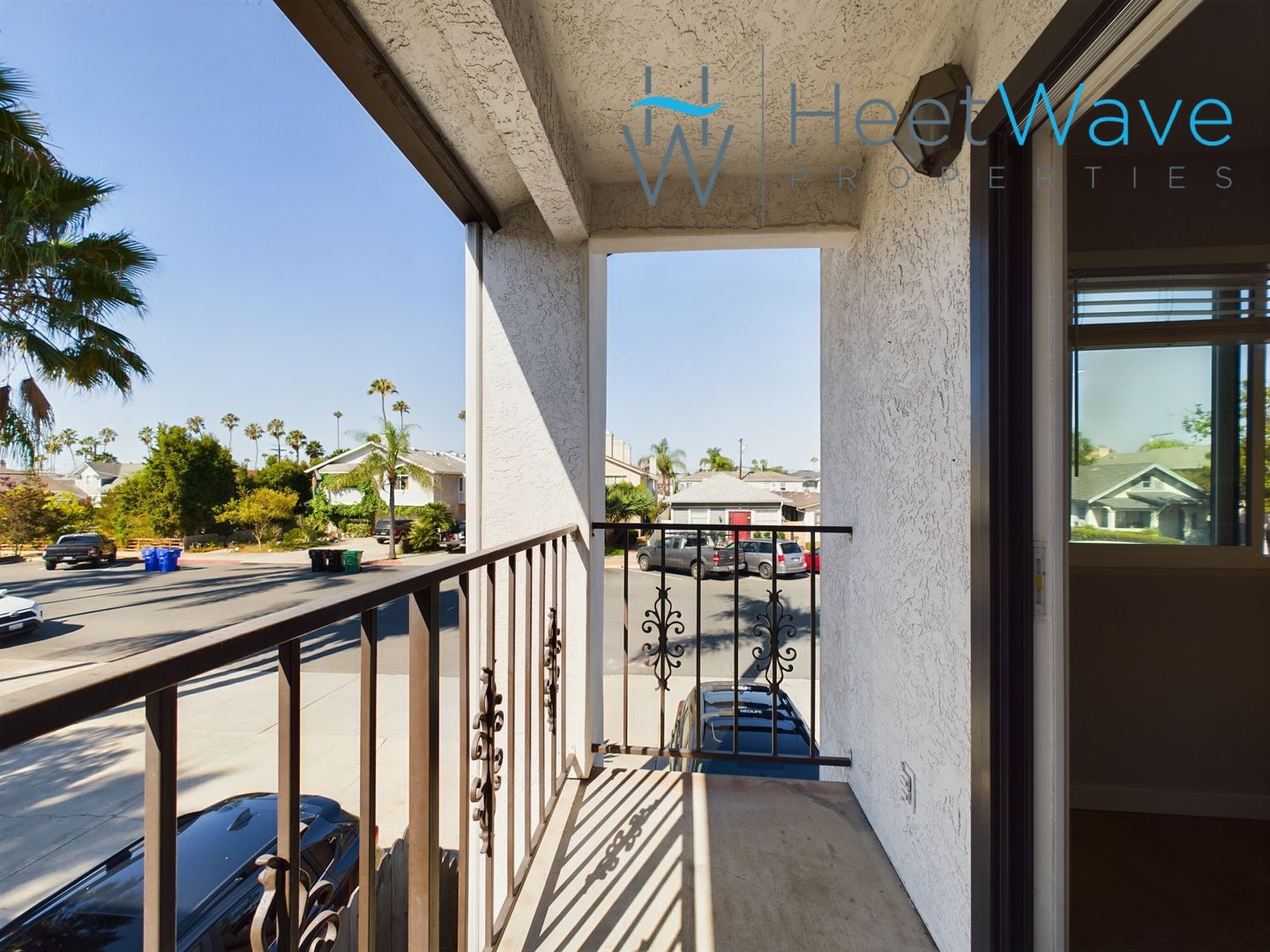 A private balcony for enjoying the beautiful weather, and a washer and dryer inside the unit for added convenience.