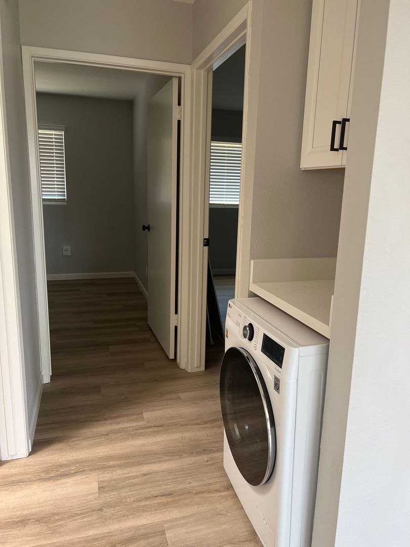 Our newly upgraded upstairs, 2-bedroom 1 bath apartment offers: A/C, in-unit washer & dryer combo, dishwasher, microwave, refrigerator, electric stove, all in white. With new plank flooring, dual pane windows and one reserved parking spot.