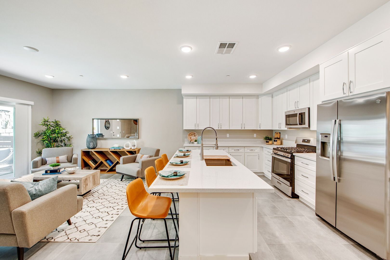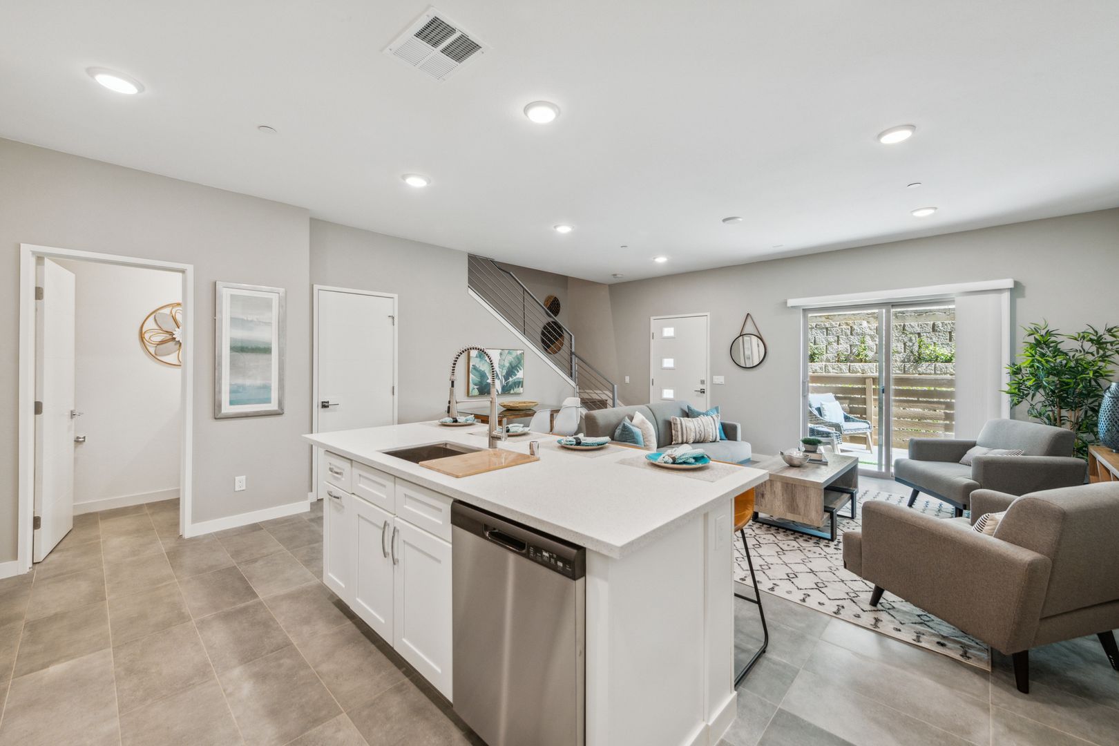Our Townhomes include nearly 1,700 sq. ft. of living space, almost twice the size of the average 2-bedroom apartments currently available in San Diego/Vista/Carlsbad areas, giving you a lot more for less per square feet! Minutes to Hwy 78, and 15 min from Carlsbad and Oceanside beach cities, these newly constructed gorgeous and spacious Townhome-Apartments nestled in central Vista are going fast! Pet friendly community! These Affordable Luxury Townhomes are bright and airy have a great design layout that features a fully equipped and modern kitchen, luxury hard surface flooring, and a spacious living area for entertaining guests.