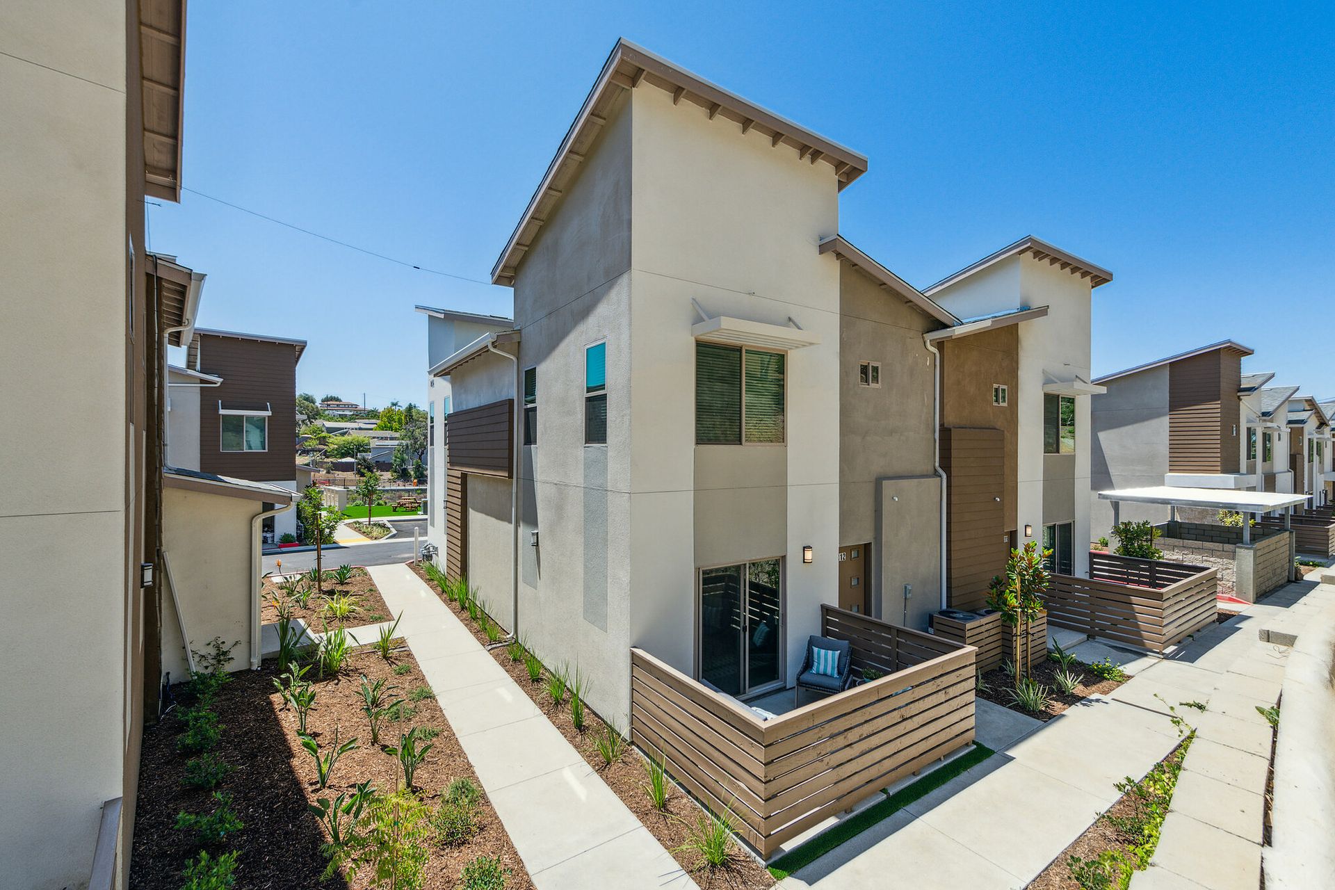Each Townhome comes with a large 2-car garage (attached) that is also ready for electric charge hook up (upon request & small installation fee), stainless steel appliances such as refrigerator, stove, dishwasher, microwave, washer/dryer, and central air conditioning/heat. Situated just a short drive from downtown Vista and all its amazing restaurants, breweries, art galleries, locally owned shops, events and family activities, a place you will enjoy calling home! AT&T Fiber Optics installed in every home!