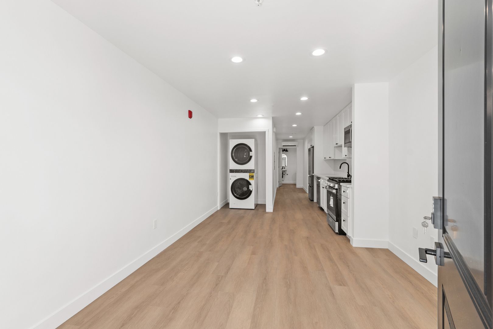This first floor apartment home has convenient entry access. Our newly developed property features beautiful plank flooring, a modern design, and high-end appliances with air conditioning. Experience the perfect blend of elegance and comfort. Schedule a private viewing today and discover the beauty of this exquisite home.